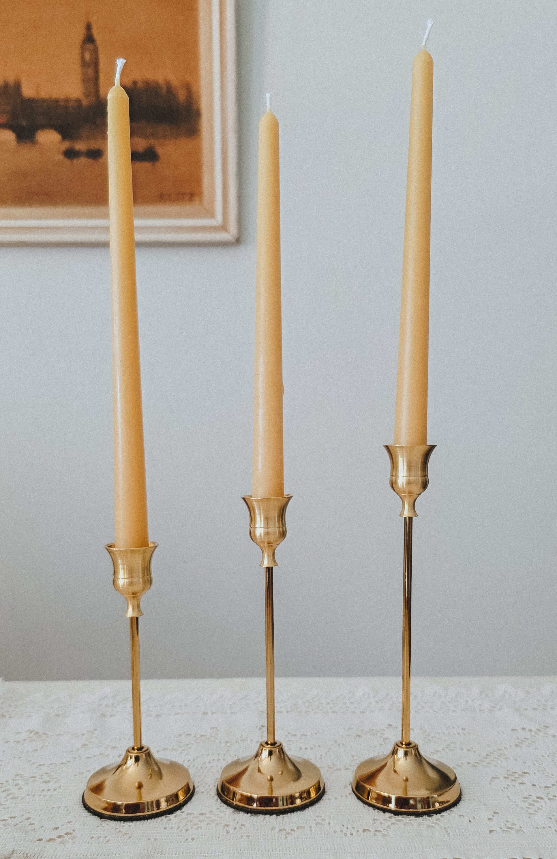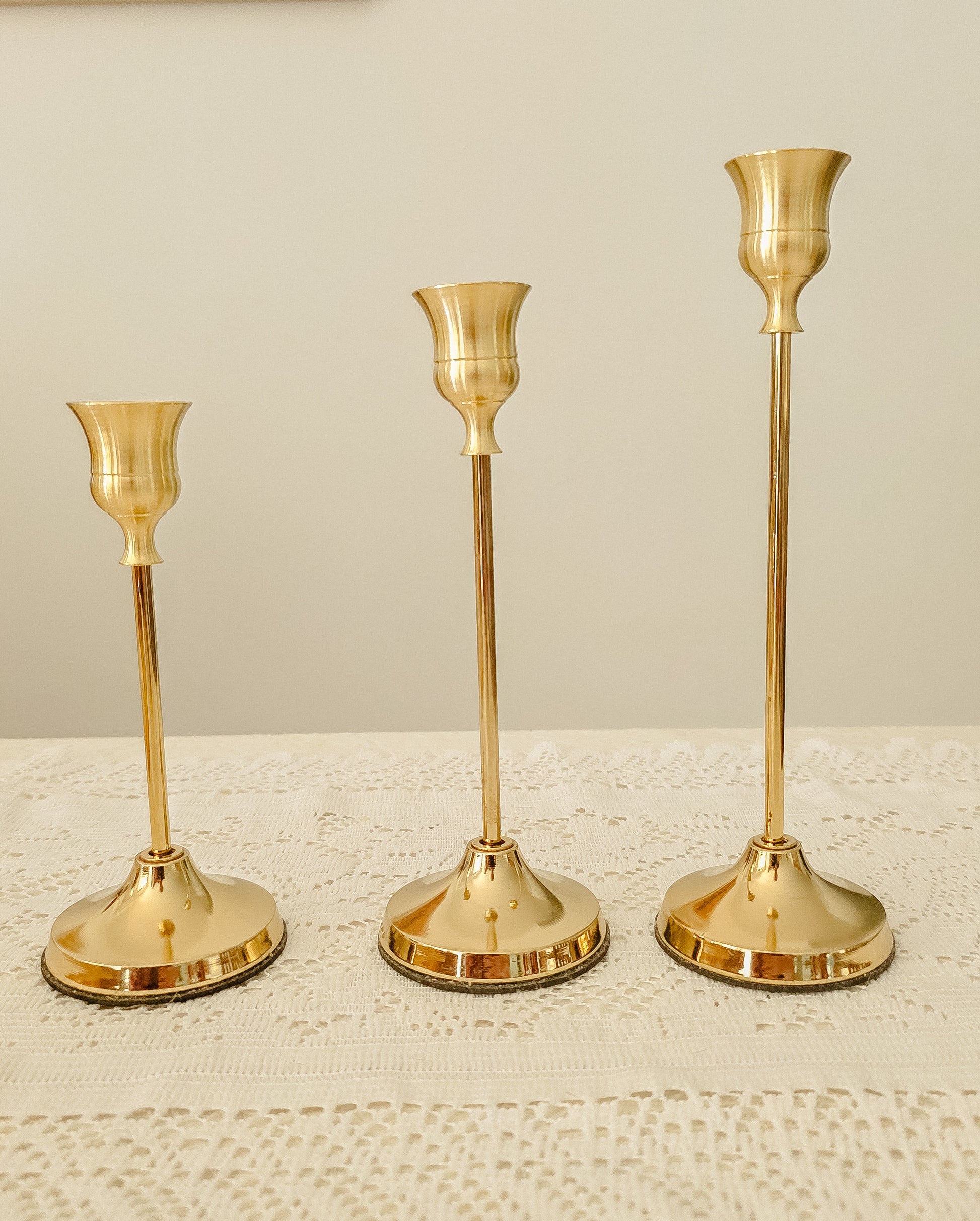 3 piece golden taper candle holders