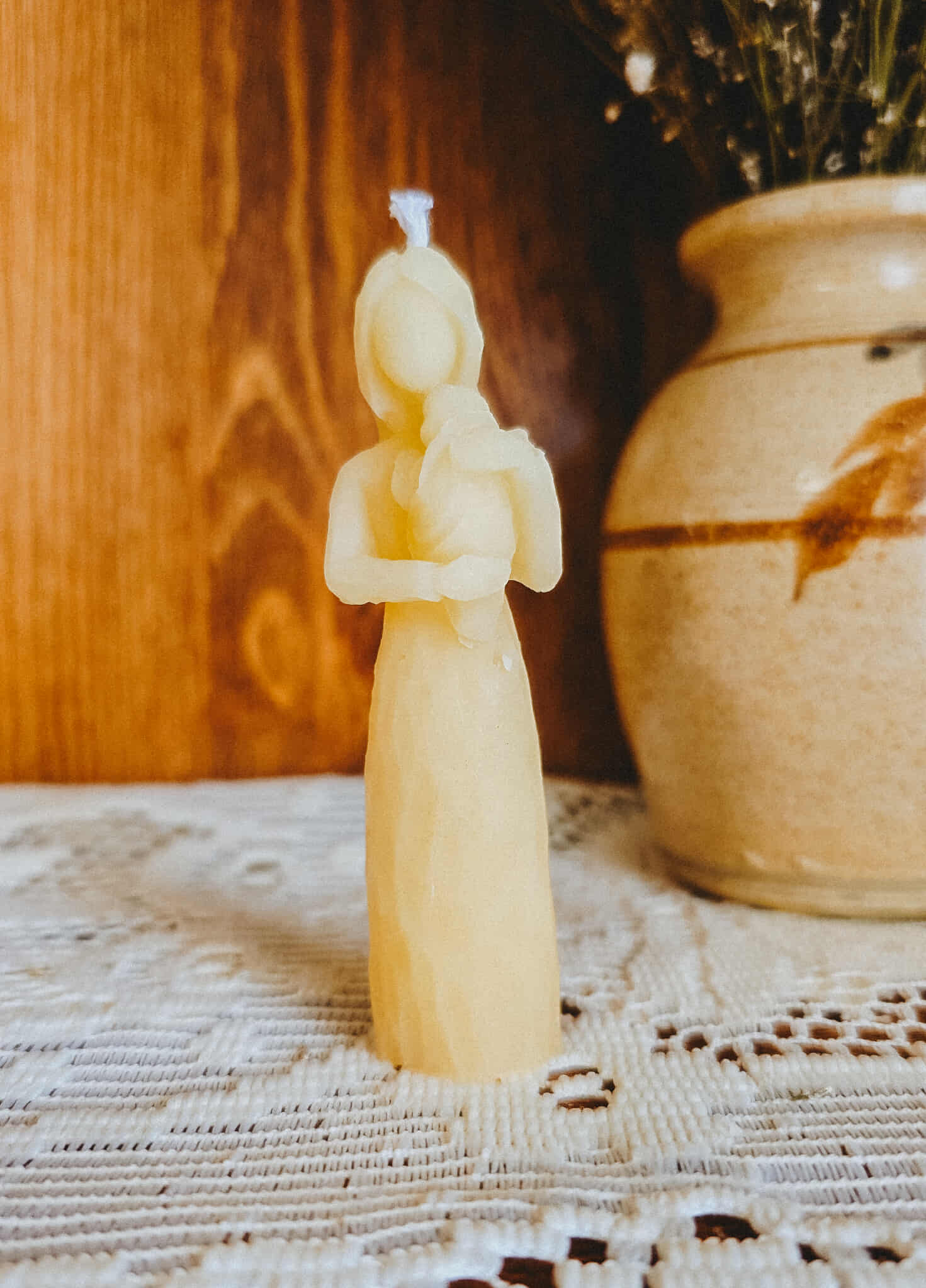 The most adorable candle to gift to a new mother, holding her newborn baby.