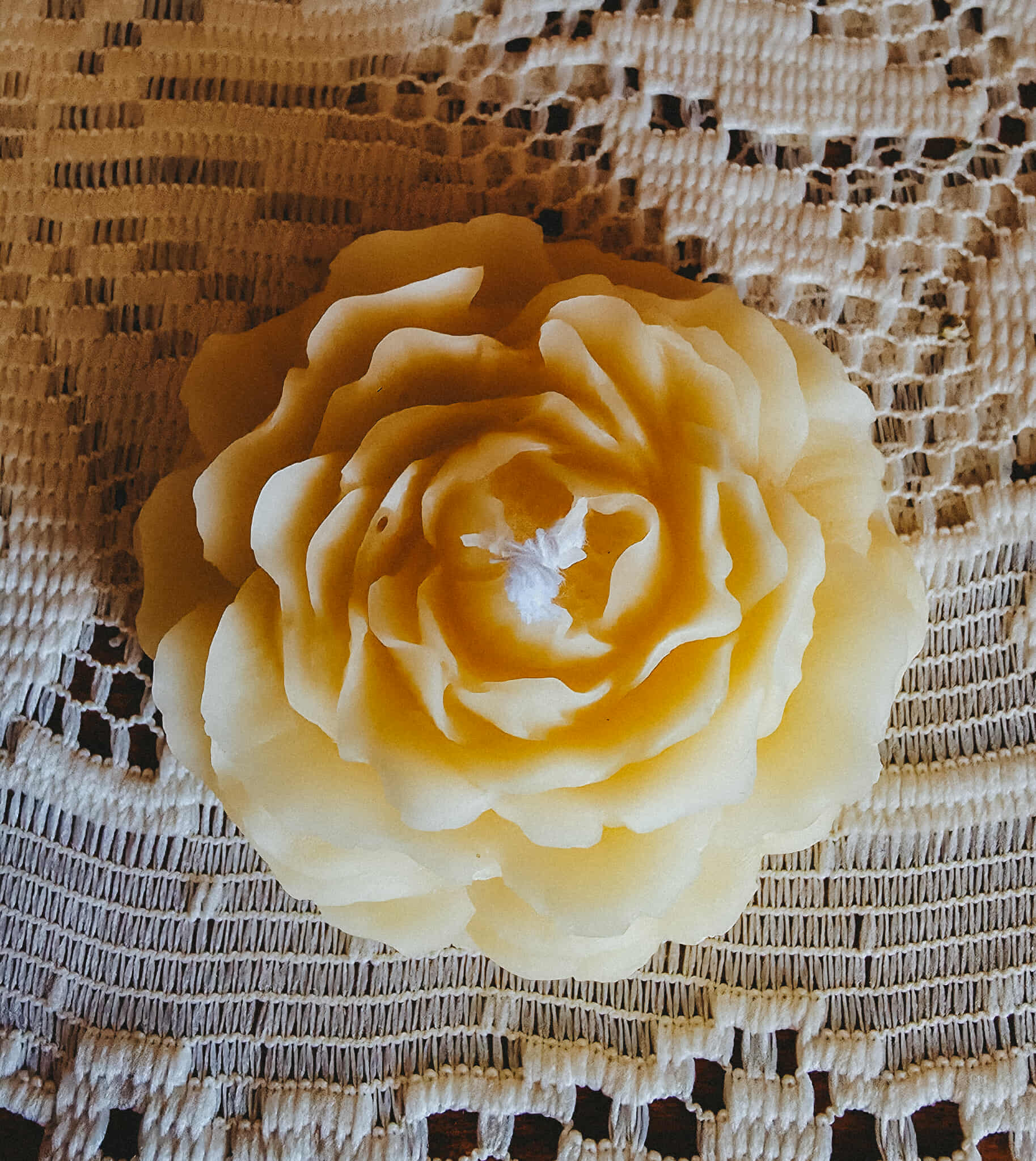 This beautiful peony beeswax is 3 cm tall and 7 cm wide. Total burn time of 10 hours.